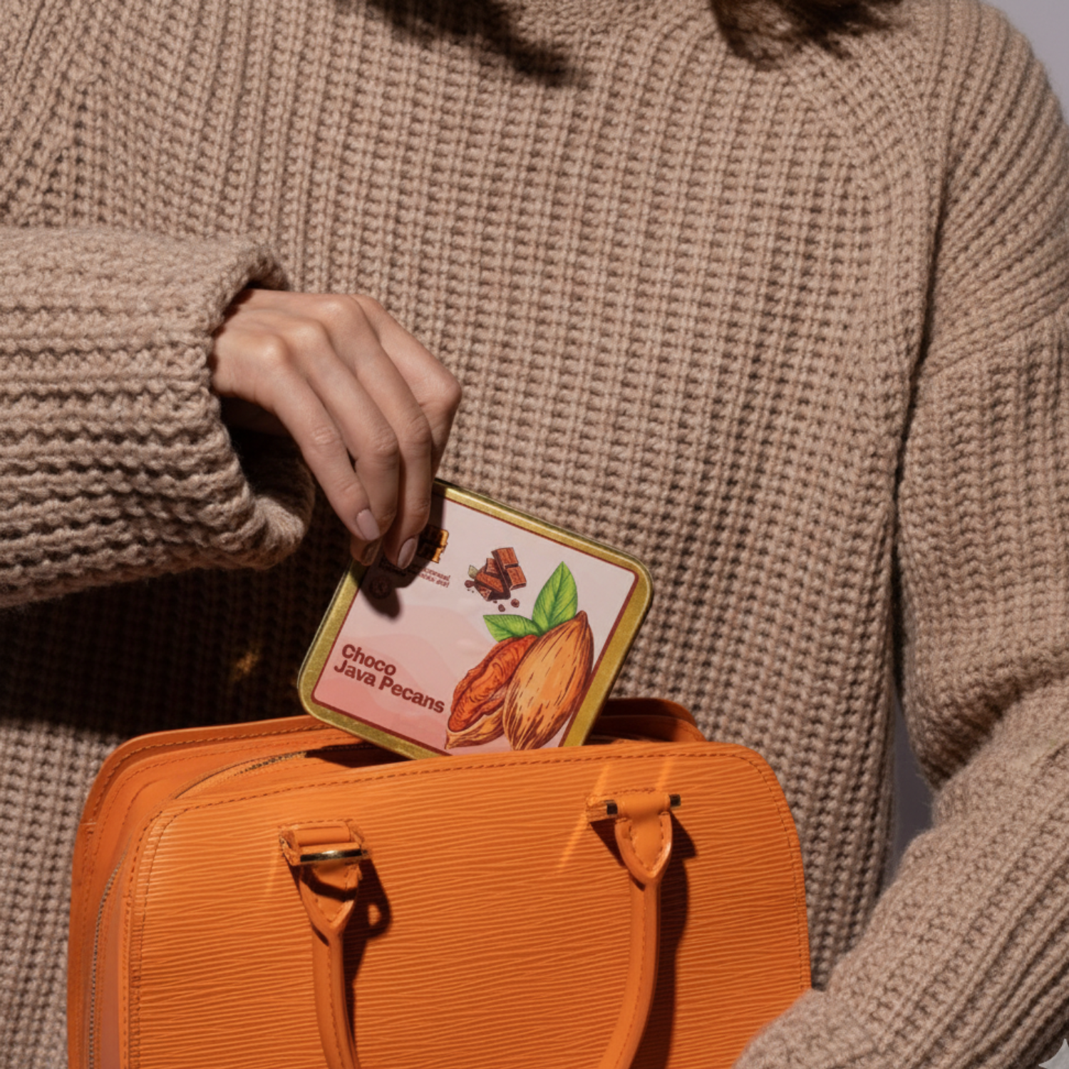 Whole roasted pecans coated in luscious Belgian couverture chocolate, finished with a whisper of espresso. It’s the kind of bite that makes your day feel a little fancier and a lot more fun. Bold, smooth, and totally addictive—this is your luxury escape in a snack.