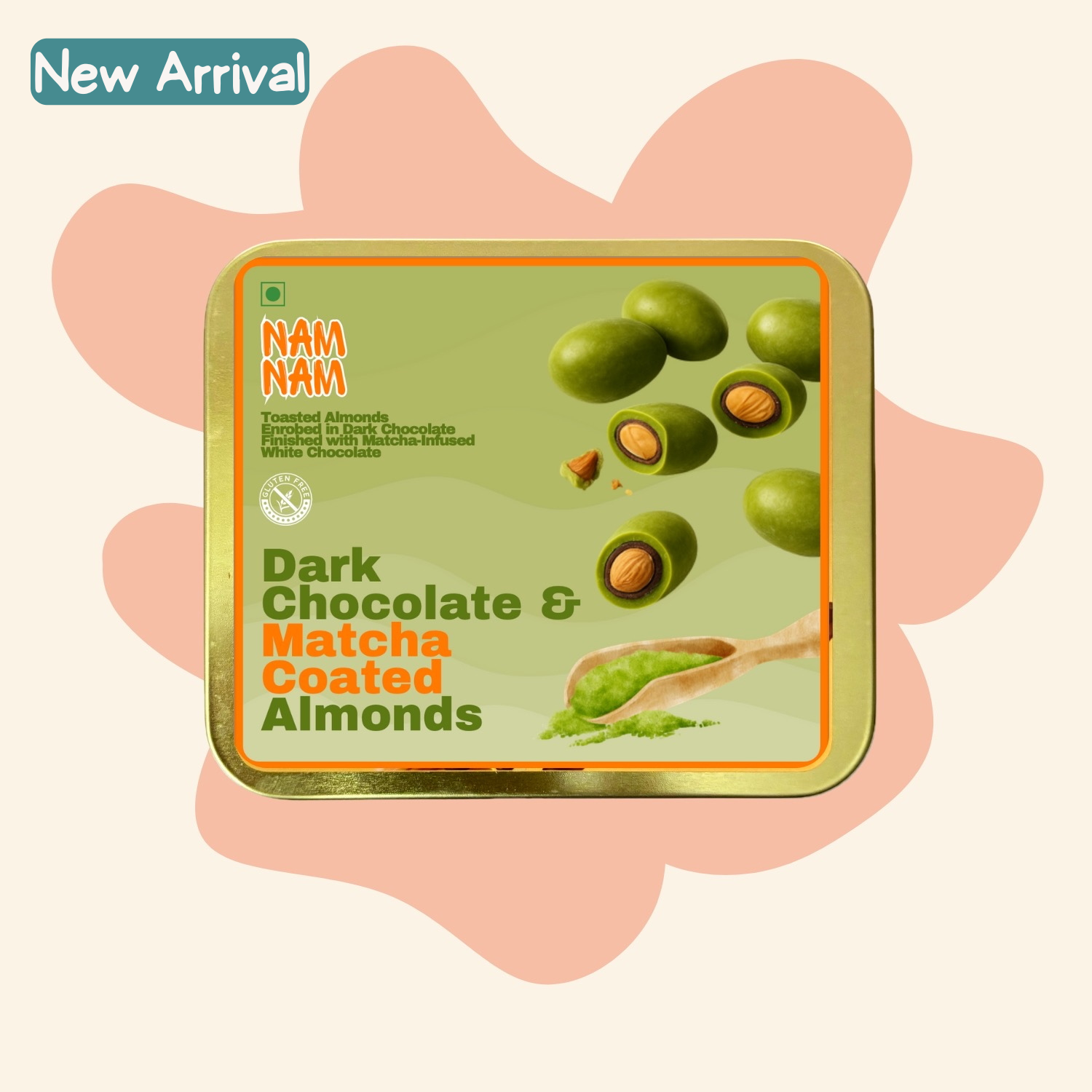 Dark Chocolate & Matcha Coated Almonds-Dipped In Belgian Couverture